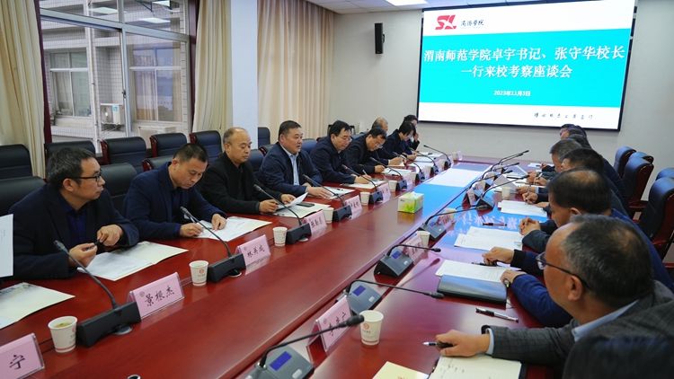 11月3日,渭南師范學(xué)院黨委書記卓宇、校長張守華一行14人來我??疾旖涣鞴ぷ鳌P|h委書記張志昌、校長范新會熱情接待了卓宇、張守華一行。雙方圍繞學(xué)科專業(yè)建設(shè)、師資隊伍建設(shè)、服務(wù)地方等方面工作進行了全面深入廣泛的交流。