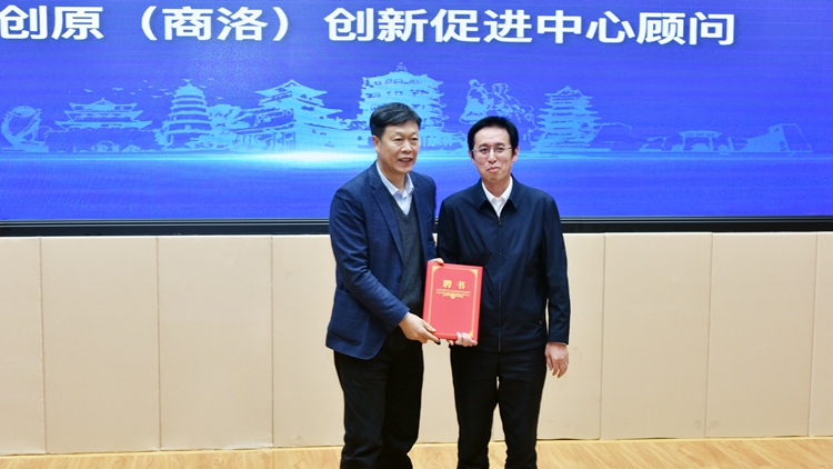 孫舉恒代表市委、市政府為陳發(fā)虎院士頒發(fā)秦創(chuàng)原(商洛)創(chuàng)新促進中心顧問聘書。