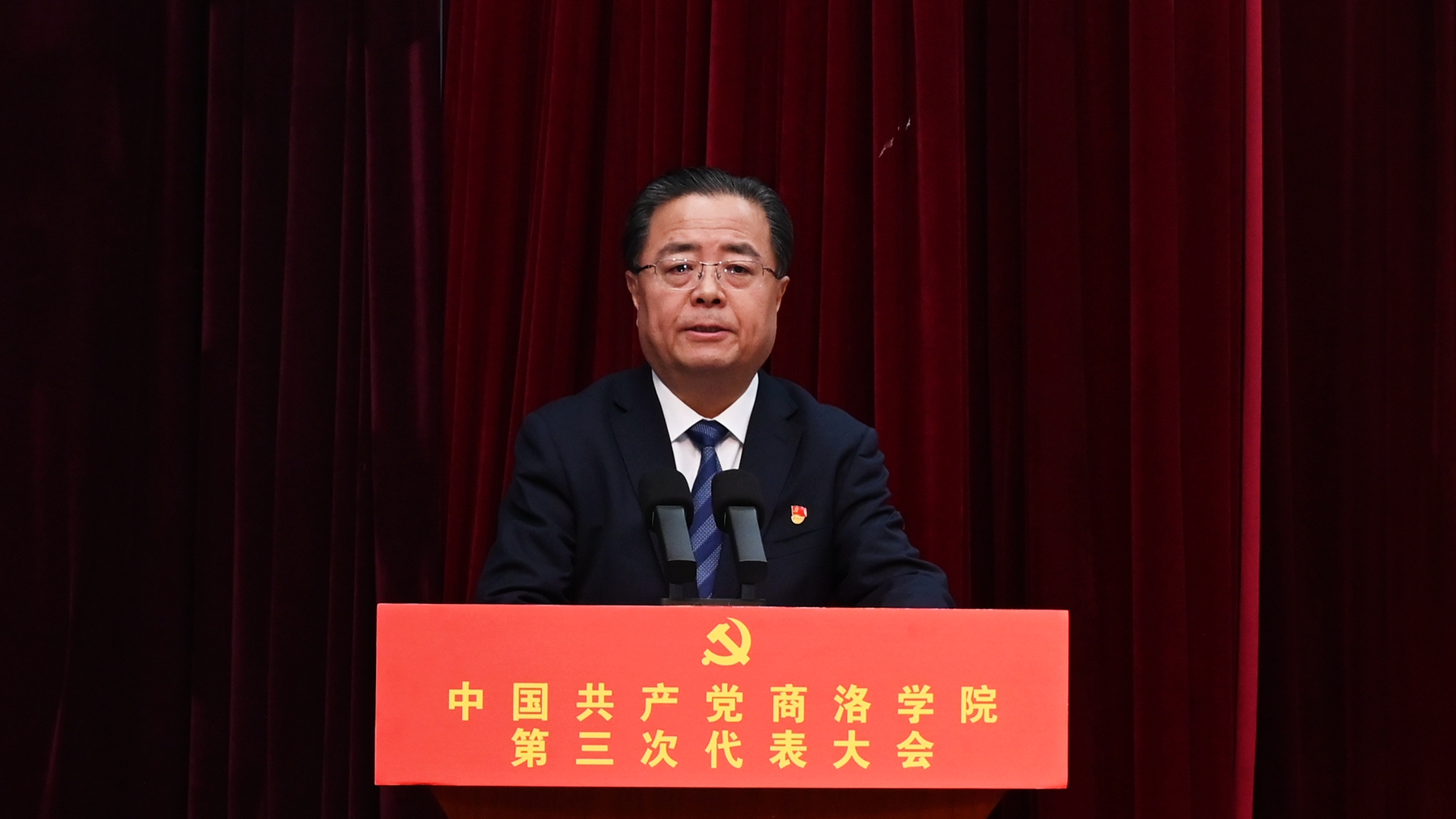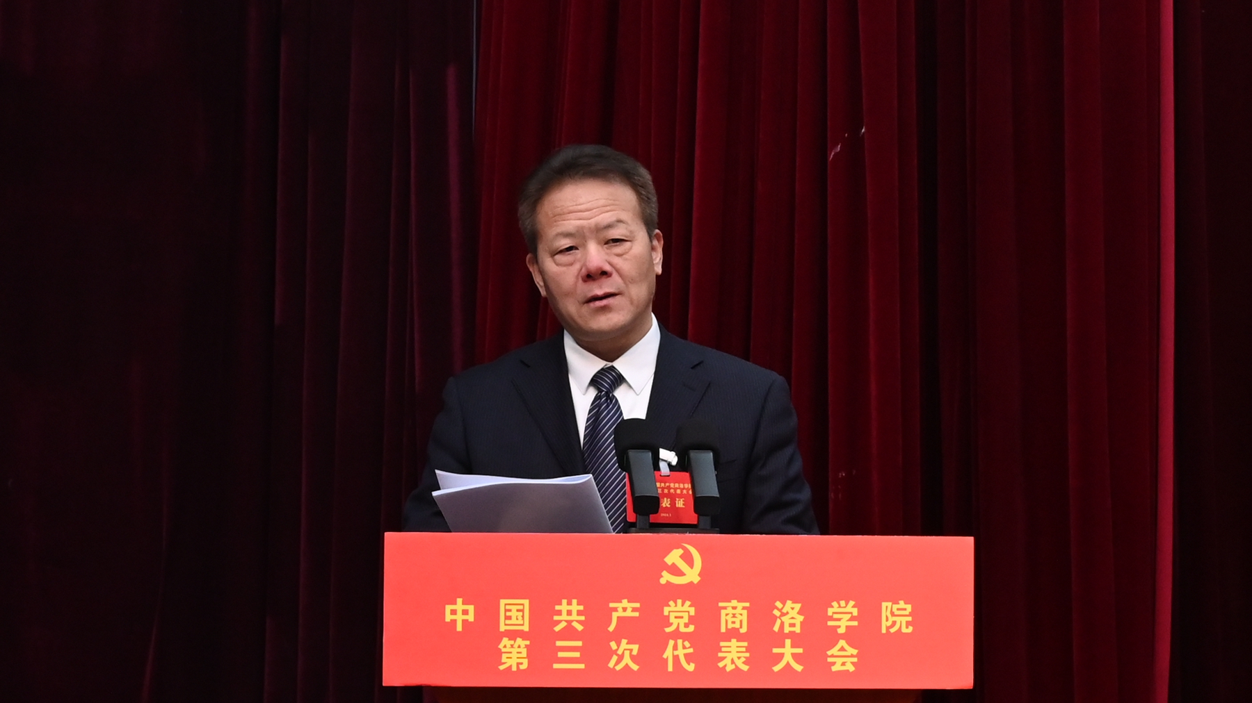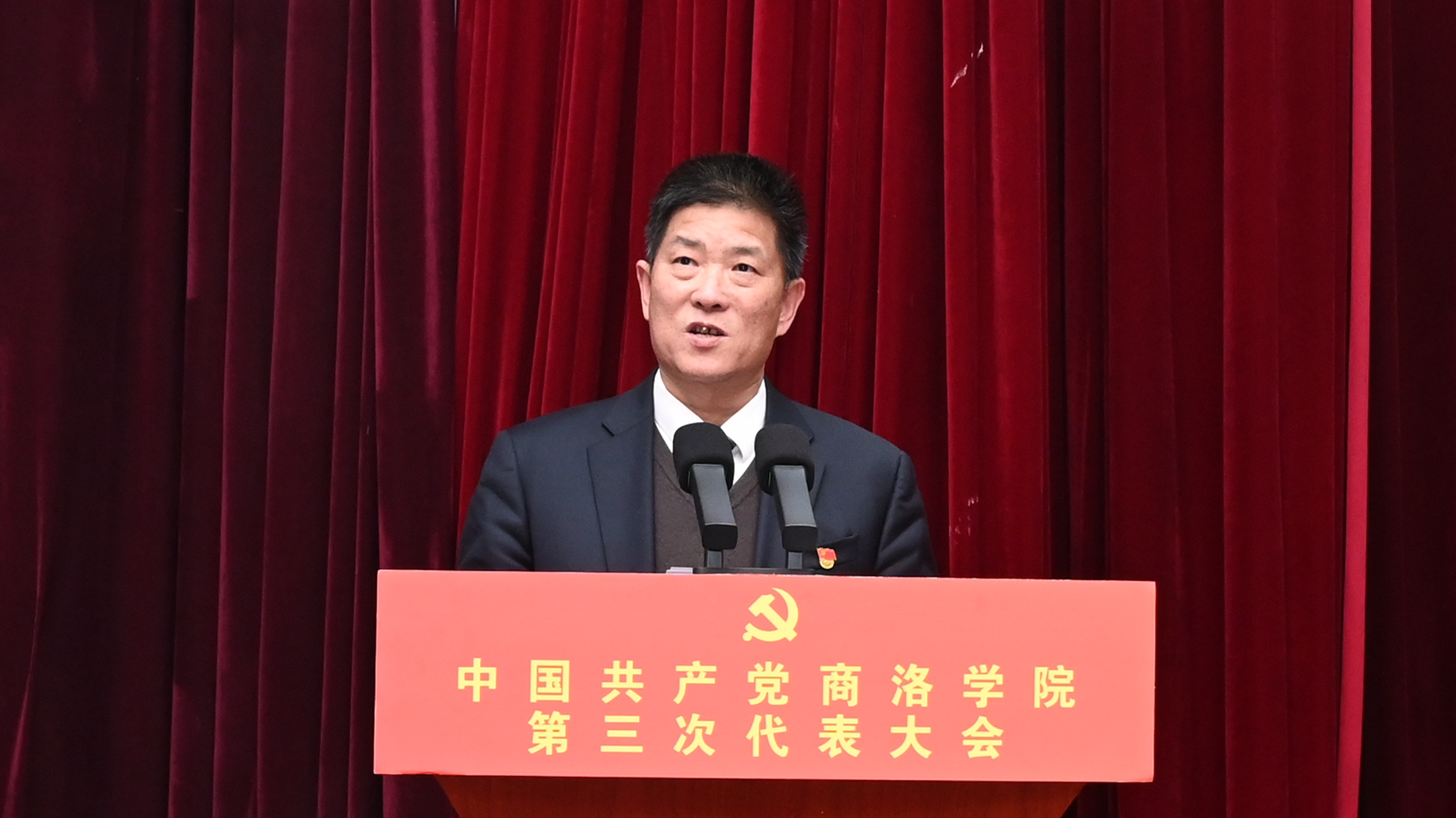 賈永安代表商洛市委、市政府對大會的勝利召開表示熱烈的祝賀。他表示,自我校第二次黨代會召開以來,全體黨員干部師生認(rèn)真貫徹落實習(xí)近平新時代中國特色社會主義思想和習(xí)近平總書記歷次來陜考察重要講話重要指示精神,全面落實建設(shè)教育強國的時代重任,秉持立足商洛、面向地方、服務(wù)基層、培養(yǎng)應(yīng)用型人才的辦學(xué)定位,不斷深化改革,加快發(fā)展,取得了有目共睹的好成績。在實現(xiàn)自身健康持續(xù)發(fā)展的同時,學(xué)校積極踐行服務(wù)地方使命,充分發(fā)揮高??萍佳邪l(fā)中心和人才高地的作用,引領(lǐng)商洛高新產(chǎn)業(yè)發(fā)展,助力地方脫貧攻堅和鄉(xiāng)村振興,為建設(shè)中國康養(yǎng)之都貢獻了重要力量。賈永安代表商洛市委、市政府對我校提出三點希望:一是扎實做好黨建工作,保持全面從嚴(yán)治黨的嚴(yán)基調(diào);二是接續(xù)開拓奮進,書寫高質(zhì)量發(fā)展的新篇章;三是踐行服務(wù)地方使命,構(gòu)建校地融合發(fā)展的新格局。