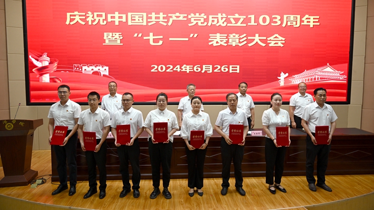 6月26日下午,我校在圖書(shū)館二樓報(bào)告廳召開(kāi)慶祝中國(guó)共產(chǎn)黨成立103周年暨“七一”表彰大會(huì)。校黨委書(shū)記張志昌出席大會(huì)并講話。大會(huì)對(duì)36名優(yōu)秀共產(chǎn)黨員、15名優(yōu)秀黨務(wù)工作者、3個(gè)先進(jìn)基層黨委和13個(gè)先進(jìn)黨支部進(jìn)行表彰。黨委委員、副校長(zhǎng)劉寶盈、王新軍、郭瑾出席大會(huì)并向受表彰集體和個(gè)人代表頒發(fā)獎(jiǎng)牌證書(shū)。大會(huì)由劉寶盈主持。