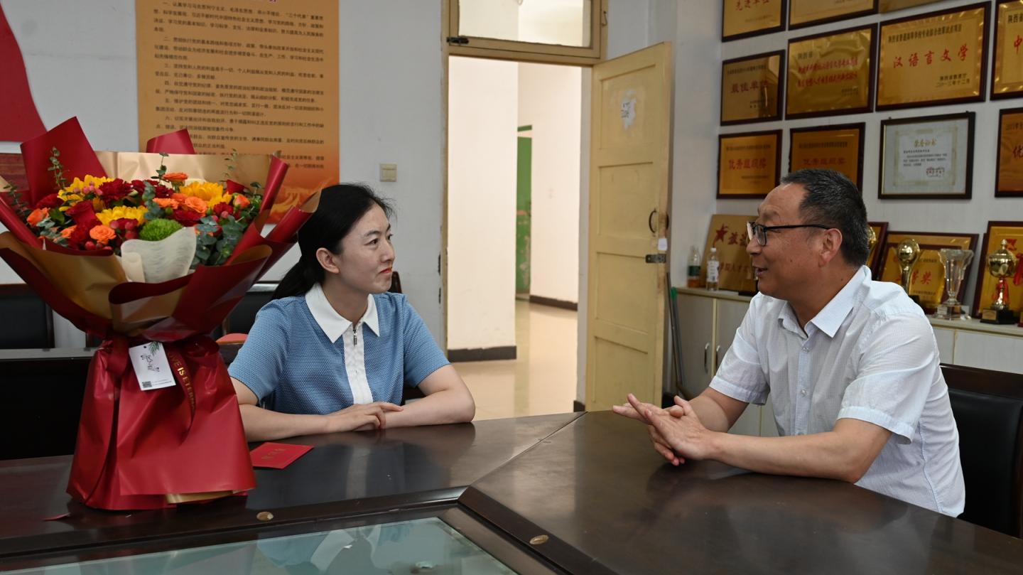 副校長劉寶盈前往人文學院,慰問2023年陜西省思政大練兵課程思政教學標兵、2024年陜西省第六屆青年教師教學技能競賽二等獎獲得者劉玉婷老師,鼓勵她全面總結比賽經驗,力爭在未來的教學和科研工作中取得更加優(yōu)異的成績。