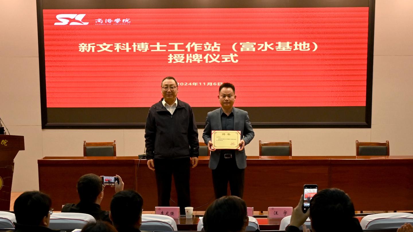 為促進(jìn)學(xué)校新文科建設(shè)、深化校地融合發(fā)展,11月6日下午,新文科博士工作站富水基地授牌儀式暨秦嶺研究與秦嶺學(xué)建設(shè)研討會在商洛學(xué)院圖書館一樓報(bào)告廳舉行。副校長劉寶盈出席儀式并為工作站授牌。富水鎮(zhèn)黨委書記汪宇、富水鎮(zhèn)干部代表,我校新文科博士工作站駐站研究員及大學(xué)生社科研究與社科普及研習(xí)社成員參加活動?;顒佑缮鐣茖W(xué)處處長李龍強(qiáng)主持。