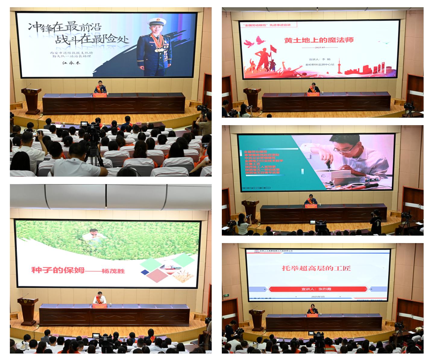 商州區(qū)和市直部分單位一線職工、農(nóng)民工、新業(yè)態(tài)人員代表,商洛學(xué)院相關(guān)職能部門負(fù)責(zé)人、師生代表共400余人共同聆聽(tīng)勞模故事,汲取奮進(jìn)力量。
