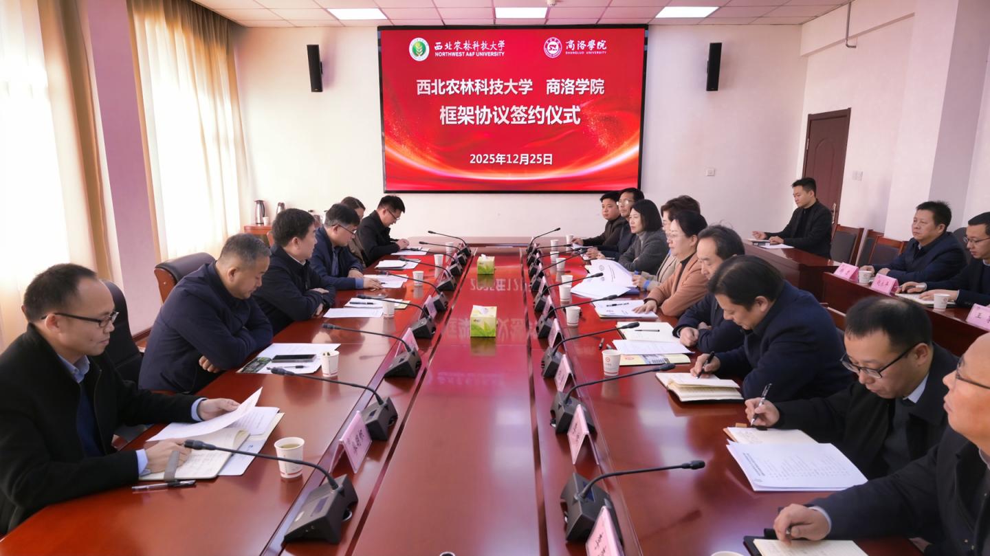 為深化校際合作、推動資源共享、提升辦學(xué)水平與服務(wù)地方能力,12月25日,我校舉行“西北農(nóng)林科技大學(xué)支持商洛學(xué)院創(chuàng)新發(fā)展框架協(xié)議簽約儀式”,西北農(nóng)林科技大學(xué)副校長房玉林,我校校長權(quán)雅寧、副校長張向東、副校長程敏共同出席會議。會議由程敏主持。