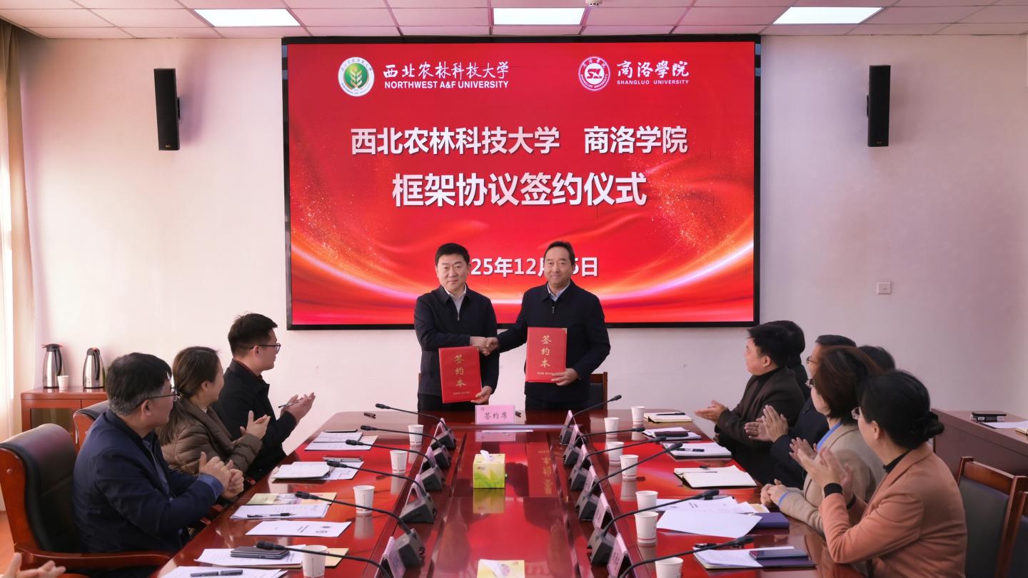 在全體與會人員的共同見證下,房玉林與張向東分別代表兩校簽署了《西北農(nóng)林科技大學(xué)支持商洛學(xué)院創(chuàng)新發(fā)展框架協(xié)議書》。