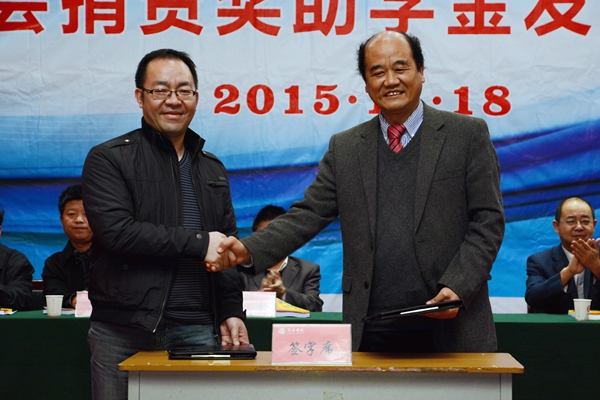 陳飛、周永春、古濤、江長路、金新康分別作了講話。他們一致表示將積極履行校企合作協(xié)議內(nèi)容,鞏固合作基礎,拓展合作范圍,打造良好的互動交流平臺,使雙方在學生社會實踐和人才培養(yǎng)、職工培訓、文化交流等方面加強合作共建,達到校企雙方豐富學生的生活閱歷和工作經(jīng)驗、有力地提升企業(yè)職工隊伍素質(zhì)的“雙贏”目的。陳飛等人還向受到資助的同學表示衷心的祝賀,希望他們珍惜大學期間寶貴的學習資源和機會,戒驕戒躁,再接再厲,努力把自己培養(yǎng)成社會的棟梁之才,為國家的美好明天做出貢獻!