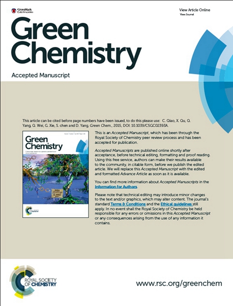 2015年,我?;瘜W(xué)工程與現(xiàn)代材料學(xué)院?jiǎn)坛煞疾┦康茸珜懙膶W(xué)術(shù)論文《Instant high-selectivity Cd-MOF chemosensor for naked-eye detection of Cu(II) confirmed using in situ microcalorimetry》在英國(guó)皇家化學(xué)會(huì)著名期刊《綠色化學(xué)》(Green Chemistry)發(fā)表。該期刊在2015年中國(guó)科學(xué)院SCI期刊分區(qū)表中屬于化學(xué)綜合類2區(qū)期刊,影響因子為8.02(DOI: 10.1039/c5gc02393a)。