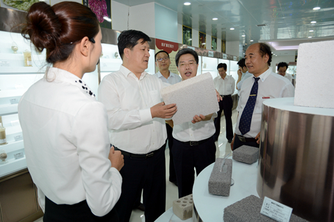 在校領導劉建林、范新會、魏書堂、彭虎軍、劉寶盈的陪同下,王建利一行先后深入紅色文化資料館、商洛文化暨賈平凹研究中心、藝術展廳、生物學院中試實驗室和食品加工實驗室、新建綜合教學樓工地、陜西省尾礦資源綜合利用重點實驗室、學校發(fā)展成就展廳及秦嶺植物標本陳列室,詳細了解我校秦嶺現(xiàn)代中藥資源和綠色食品開發(fā)利用,秦嶺礦產(chǎn)資源綜合開發(fā)利用,賈平凹研究、秦嶺畫派等地方文化傳承創(chuàng)新為代表的辦學特色,以及應用型人才培養(yǎng)等工作開展情況。