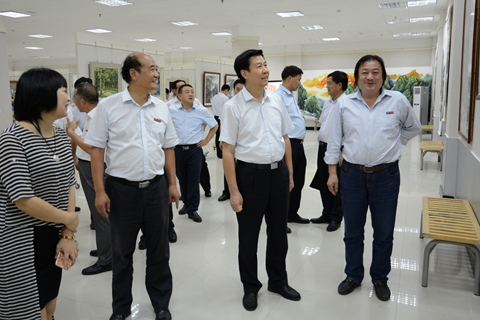 莊長興興致勃勃地參觀了商洛紅色文化資料館、商洛文化暨賈平凹研究中心和藝術(shù)展廳。他對(duì)學(xué)校依托地方紅色資源和文化資源建設(shè)特色展室,開展教學(xué)及科學(xué)研究工作給予了充分肯定。他還與藝術(shù)學(xué)院師生親切交談,了解秦嶺畫派創(chuàng)作情況,勉勵(lì)師生靜下心來,創(chuàng)作出更多更好的藝術(shù)作品。