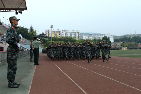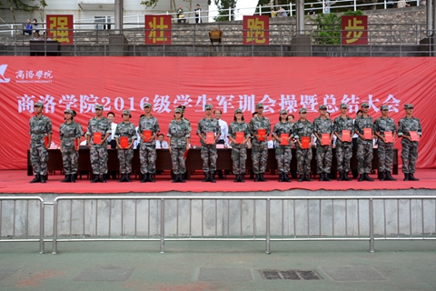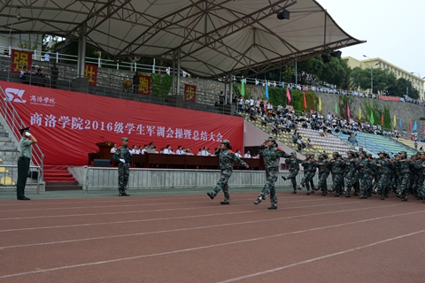 9月18日下午,我校隆重舉辦2016級學(xué)生軍訓(xùn)會操暨總結(jié)大會,檢閱2016級學(xué)生軍訓(xùn)成果,對軍訓(xùn)中涌現(xiàn)出的先進集體和個人進行表彰。校領(lǐng)導(dǎo)劉建林、范新會、王思懷、魏書堂、彭虎軍、劉寶盈,商洛軍分區(qū)參謀長李水龍大校,中國人民解放軍第47集團軍某部機步營營長、我校2016級學(xué)生軍訓(xùn)團團長馬防少校出席大會并為先進集體和個人頒獎。各二級學(xué)院黨政負責(zé)人,各職能部門負責(zé)人,全體2016級學(xué)生及輔導(dǎo)員參加了大會。大會由黨委副書記、副校長范新會主持。