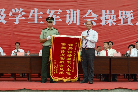 為感謝軍訓(xùn)團教官對我校學(xué)生的悉心指導(dǎo),黨委書記、校長劉建林代表學(xué)校向47集團軍某部贈送了寫有“鐵骨錚錚顯軍人本色 亦師亦友彰教官風(fēng)采”的錦旗,馬防少校代表全體教官接受了錦旗。