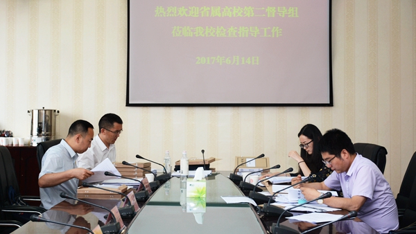 6月14日,以西北大學(xué)原黨委副書記黃建民為組長(zhǎng)的陜西省委高教工委第二督導(dǎo)組來我校,檢查督導(dǎo)追趕超越、貫徹“三項(xiàng)機(jī)制”和推進(jìn)“兩學(xué)一做”學(xué)習(xí)教育常態(tài)化制度化、精準(zhǔn)扶貧、思政教育和黨風(fēng)廉政建設(shè)等方面工作。校黨委書記龍治剛、校長(zhǎng)范新會(huì)、副校長(zhǎng)劉勇陪同檢查。黨委委員、干部人事處處長(zhǎng)高榮發(fā)參加督查。