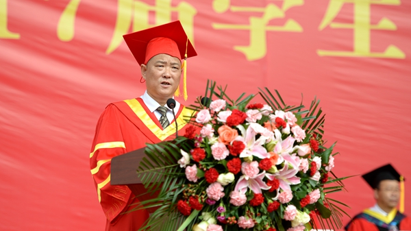 校長范新會以《永遠(yuǎn)與母校共同成長和發(fā)展》為題發(fā)表了情真意切的講話,對即將步入社會的畢業(yè)生表達(dá)了最真摯的祝福。他深情地說,大學(xué)四年生活是人生中一段抹不去的記憶,是人生經(jīng)歷中不可多得的閱歷與財富,同學(xué)們也是學(xué)校歷史上不可或缺的重要一員!在過去的四年里,同學(xué)們在學(xué)校學(xué)習(xí)知識、增長才干、砥礪品格、收獲情誼。走向社會,同學(xué)們將用學(xué)到的知識、練就的才能去開創(chuàng)你們未來的事業(yè),同學(xué)們未來的成就將永遠(yuǎn)是學(xué)校的驕傲和財富。