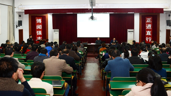 10月18日至24日,黨的十九大在北京勝利召開。我校及時召開黨委理論學(xué)習(xí)中心組集體理論學(xué)習(xí)擴(kuò)大會,專題學(xué)習(xí)黨的十九大精神,研究部署我校學(xué)習(xí)宣傳貫徹黨的十九大精神相關(guān)工作。十九大代表、商洛市委書記陳俊來到我校,深入師生宣講黨的十九大精神;中國人民大學(xué)博士生導(dǎo)師,中國思想政治工作研究會、中宣部思想政治工作研究所特約研究員張云飛教授應(yīng)邀來我校作專題報告。為了使師生深入學(xué)習(xí)領(lǐng)會黨的十九大精神,我校及時成立了以馬克思主義學(xué)院教師為主體,由校紀(jì)委書記王思懷教授任團(tuán)長的黨的十九大精神宣講團(tuán)。宣講團(tuán)成立后,在一周時間內(nèi)通過宣講報告、形勢與政策課等形式集中發(fā)力,實現(xiàn)了全校師生全覆蓋。
