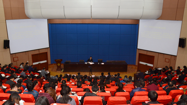 11月27日,省專家學(xué)者宣講團(tuán)黨的十九大精神示范宣講報(bào)告會(huì)在我校圖書館二樓報(bào)告廳舉行。陜西省社科聯(lián)黨組書記、常務(wù)副主席李穎科教授為師生作了題為《堅(jiān)定文化自信,努力推動(dòng)社會(huì)主義文化繁榮興盛》的專題報(bào)告。校領(lǐng)導(dǎo)龍治剛、王思懷、魏書堂、彭虎軍、劉寶盈、劉勇出席報(bào)告會(huì),全校副科級(jí)以上領(lǐng)導(dǎo)干部、副高級(jí)職稱以上教師、青馬班學(xué)員等師生近500人聆聽了報(bào)告。報(bào)告會(huì)由黨委書記龍治剛主持。