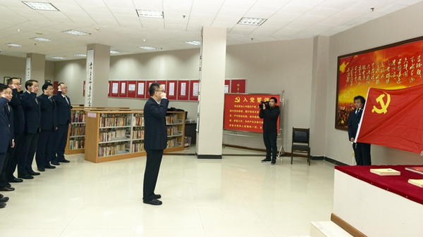 1月15日上午8時,中國共產(chǎn)黨商洛學(xué)院第二屆委員會委員龍治剛、范新會、王思懷、彭虎軍、劉寶盈、劉勇、王新軍、李超、楊存典、張向東、郭瑾,一起來到位于學(xué)校圖書館的商洛紅色文化資料館展廳,集體重溫入黨誓詞。在黨委書記龍治剛領(lǐng)誓下,黨委委員們舉起右拳,面對黨旗莊嚴(yán)宣誓。