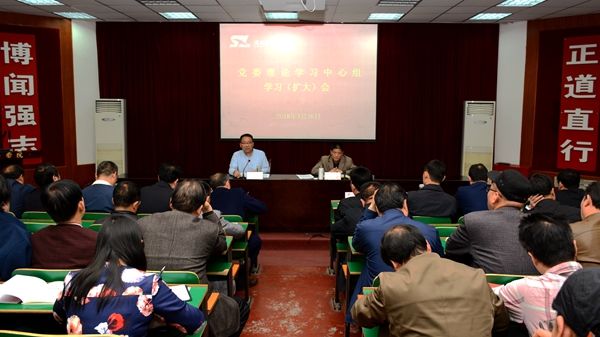 3月26日,校黨委理論學(xué)習(xí)中心組召開(kāi)(擴(kuò)大)會(huì)議,傳達(dá)學(xué)習(xí)貫徹2018年全國(guó)兩會(huì)精神。黨委書(shū)記龍治剛主持會(huì)議并傳達(dá)了十三屆人大一次會(huì)議精神,黨委副書(shū)記、校長(zhǎng)范新會(huì)傳達(dá)了全國(guó)政協(xié)十三屆一次會(huì)議精神。校領(lǐng)導(dǎo)、黨委中心組成員及全校處科級(jí)干部參加會(huì)議。