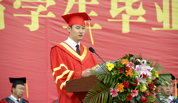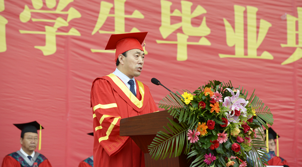 校長范新會以《不忘初心 砥礪奮進 做新時代的奮斗者》為題發(fā)表了情真意切的講話。他深情地說,“母?!笔且粋€溫暖而幸福的字眼,是世界上最質(zhì)樸的一種情結(jié),是最為珍貴的人生記憶。過去的四年,學(xué)校事業(yè)蓬勃發(fā)展,蒸蒸日上。你們與學(xué)校共同成長、共同進步,追求理想,砥礪前行,在這里磨礪了意志,增長了才干。你們用奮斗點亮了大學(xué)時光,為學(xué)校贏得了無數(shù)榮譽,你們的拼搏精神和青春故事已經(jīng)深深地鐫刻在母校的記憶里!在這依依惜別的時刻,母校和老師對你們不舍再見,更為你們感到驕傲!
