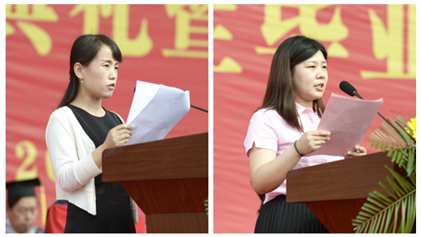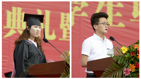 人文學(xué)院秘書學(xué)專業(yè)1401班孟丹代表2018屆畢業(yè)生,向?qū)W校領(lǐng)導(dǎo)和老師致以最崇高的敬意和最衷心的感謝!他說,我們將帶著母校的希望與囑托,去勇敢面對人生,尋求生命的光榮和夢想。未來的我們會更加勤奮,更加拼搏,未來的商院也必將更加繁榮,更加強大!