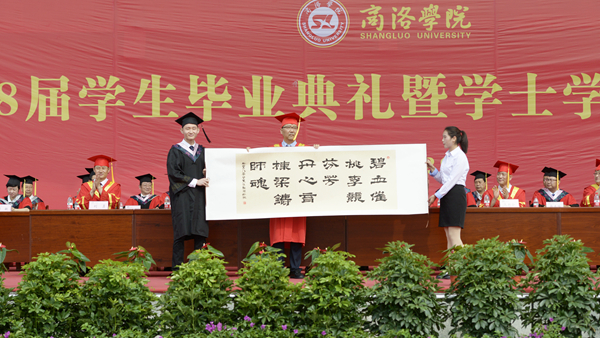 副校長劉勇宣讀了商洛學(xué)院2018屆畢業(yè)生畢業(yè)資格及學(xué)士學(xué)位授予資格審核結(jié)果、優(yōu)秀畢業(yè)生及“奉獻基層 服務(wù)邊疆”優(yōu)秀畢業(yè)生表彰決定。思政1402班常文潔等126名同學(xué)被授予“優(yōu)秀畢業(yè)生”榮譽稱號,思政1402班王聰?shù)?0名同學(xué)被評為“奉獻基層 服務(wù)邊疆”優(yōu)秀畢業(yè)生。在熱烈的掌聲中,校領(lǐng)導(dǎo)為優(yōu)秀畢業(yè)生代表頒發(fā)了證書。