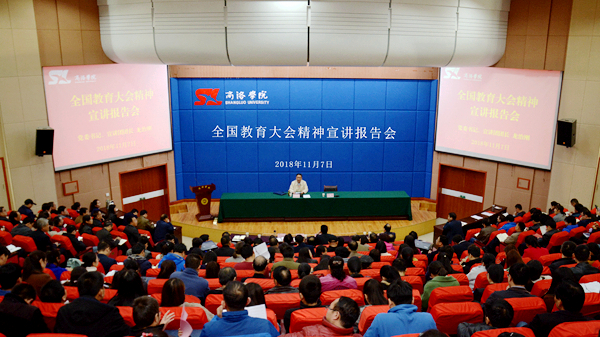 ——校黨委書記龍治剛帶頭宣講。11月7日,我校舉辦全國教育大會(huì)精神首場(chǎng)宣講報(bào)告會(huì),校黨委書記、宣講團(tuán)團(tuán)長龍治剛作輔導(dǎo)報(bào)告。龍治剛從充分認(rèn)識(shí)全國教育大會(huì)的重大意義,深入學(xué)習(xí)領(lǐng)會(huì)習(xí)近平總書記關(guān)于教育工作的重要論述等方面對(duì)全國教育大會(huì)精神進(jìn)行了剖析和解讀,并緊密結(jié)合學(xué)校實(shí)際就落細(xì)落小全國教育大會(huì)精神提出了明確要求。龍治剛指出,學(xué)習(xí)全國教育大會(huì)精神,最重要的是深入學(xué)習(xí)領(lǐng)會(huì)、全面準(zhǔn)確把握習(xí)近平總書記關(guān)于教育的重要論述,要深刻理解和把握?qǐng)?jiān)持黨對(duì)教育事業(yè)的全面領(lǐng)導(dǎo)的根本要求,深刻理解和把握?qǐng)?jiān)持立德樹人的根本任務(wù),深刻理解和把握優(yōu)先發(fā)展教育事業(yè)的戰(zhàn)略部署,深刻理解和把握?qǐng)?jiān)持社會(huì)主義辦學(xué)方向的政治原則,深刻理解和把握?qǐng)?jiān)持扎根中國大地辦教育的自覺自信,深刻理解和把握?qǐng)?jiān)持以人民為中心發(fā)展教育的價(jià)值追求,深刻理解和把握?qǐng)?jiān)持深化教育改革創(chuàng)新的根本動(dòng)力,深刻理解和把握?qǐng)?jiān)持中華民族偉大復(fù)興的重要使命,深刻理解和把握?qǐng)?jiān)持把加強(qiáng)教師隊(duì)伍建設(shè)作為基礎(chǔ)工作的重大意義。要以全國教育大會(huì)精神武裝頭腦、指導(dǎo)實(shí)踐、推動(dòng)工作,以更加優(yōu)異的成績書寫商洛學(xué)院教育事業(yè)的“奮進(jìn)之筆”。