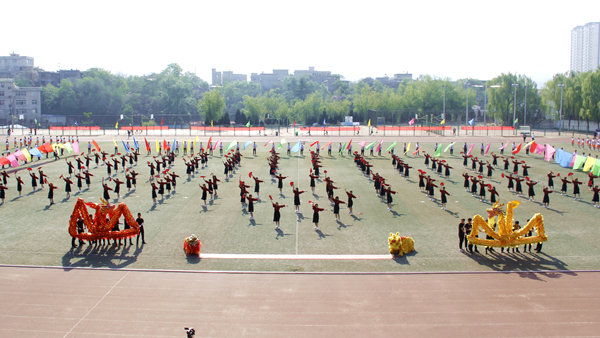 開幕式文體表演亮點(diǎn)頗多,精彩紛呈。我校航模隊(duì)與商洛市航空運(yùn)動(dòng)協(xié)會(huì)夢(mèng)想飛行表演隊(duì)的航模表演率先開場(chǎng),航模飛機(jī)在激昂的音樂聲中搏擊長(zhǎng)空,升降翻轉(zhuǎn),劃出一道道優(yōu)美的弧線。建工學(xué)院學(xué)生以紅扇跳勁舞,龍虎相隨,青春激情,以歡快的舞姿、動(dòng)感的隊(duì)形充分展現(xiàn)青春活力?;膶W(xué)院學(xué)生用熱情歡快的啦啦操和“1949”“70”的隊(duì)形,表達(dá)對(duì)祖國(guó)深深的熱愛與誠(chéng)摯的祝福。數(shù)計(jì)學(xué)院學(xué)生以整齊優(yōu)雅的華爾茲雙人舞,展現(xiàn)學(xué)子儒雅優(yōu)秀的一面,用“SLXY"圖樣的隊(duì)形表達(dá)自己對(duì)學(xué)校美好明天的祝福。藝術(shù)學(xué)院學(xué)生身著藏族、傣族、蒙古族、佤族、維吾爾族,朝鮮族、苗族等多個(gè)民族服裝,結(jié)合現(xiàn)代舞蹈動(dòng)作,在愛我中華的樂曲中展現(xiàn)中華民族多元文化風(fēng)采和我校學(xué)子的勃勃生機(jī)。