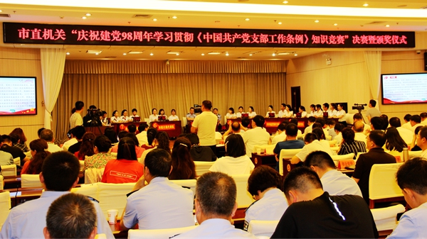 由市委機(jī)關(guān)工委舉辦的市直機(jī)關(guān)“慶祝建黨98周年學(xué)習(xí)貫徹《中國(guó)共產(chǎn)黨支部工作條例(試行)》知識(shí)競(jìng)賽于6月21日在商洛市行政中心舉辦。我校代表隊(duì)在競(jìng)賽中取得了團(tuán)體二等獎(jiǎng)、1個(gè)最佳選手獎(jiǎng)、2個(gè)優(yōu)秀選手獎(jiǎng)的佳績(jī)。