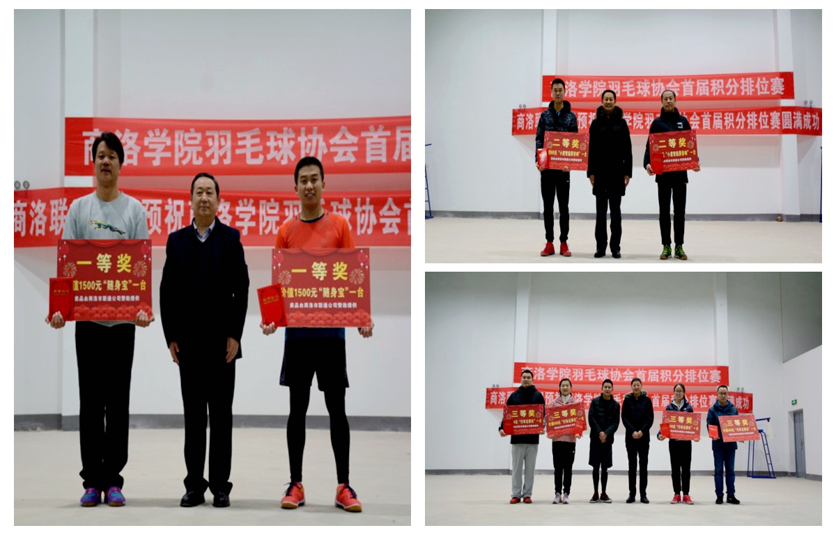 經(jīng)過激烈角逐,王健、劉彥春獲得一等獎;楊軍、張宗海獲得二等獎;李斌、葛建平、何佳佳、楊艷獲得三等獎。我校校工會、體育教學研究部、羽毛球協(xié)會相關(guān)負責人,中國聯(lián)通公司商洛分公司、商洛市裕元商旅服務(wù)有限公司、商洛市羽人俱樂部相關(guān)人員一同觀看了比賽,并為獲獎?wù)哳C發(fā)了榮譽證書和獎品。