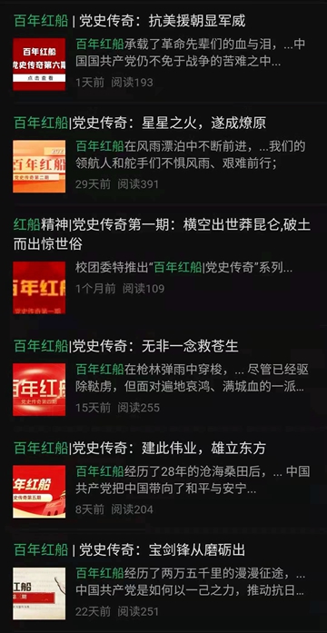 該欄目堅(jiān)持每周推送一期新內(nèi)容,截至目前,總共推出6期,受到廣大團(tuán)員青年熱烈追捧。同學(xué)們紛紛表示,走得再遠(yuǎn)都不能忘記來(lái)時(shí)的路,“紅船精神”是中國(guó)革命精神之源,我們學(xué)習(xí)黨史首先要從學(xué)習(xí)“紅船精神”開(kāi)始,學(xué)習(xí)中國(guó)共產(chǎn)黨開(kāi)天辟地、敢為人先的首創(chuàng)精神,堅(jiān)定理想、百折不撓的奮斗精神,立黨為公、忠誠(chéng)為民的奉獻(xiàn)精神。在“兩個(gè)一百年”奮斗目標(biāo)的交匯點(diǎn),面對(duì)世界百年未有之大變局,我們尤為需要弘揚(yáng)“紅船精神”,用“紅船精神”激勵(lì)和鼓舞青年一代奮發(fā)有為,積極投身中國(guó)特色社會(huì)主義偉大實(shí)踐,為中華民族偉大復(fù)興貢獻(xiàn)青春力量。