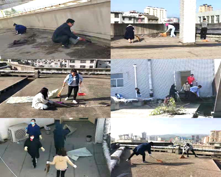 在圖書館黨政負責(zé)人的帶領(lǐng)下,40余名館員手持勞動工具,全面清理了圖書樓樓頂堆積已久的磚頭、水泥塊、廢棄建筑材料,鏟走下水口附近雨水沖積的淤泥、垃圾,疏通了排水管道,清理了三十多立方垃圾,為師生營造了良好的閱讀及學(xué)習(xí)環(huán)境。