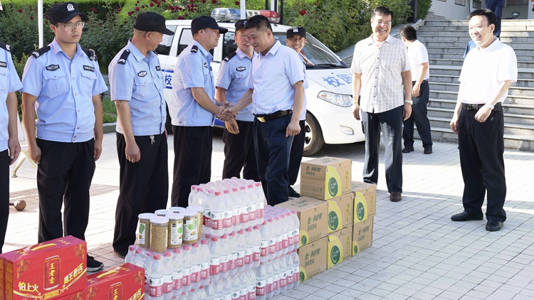 在黨委辦公室·院長(zhǎng)辦公室、校工會(huì)、保衛(wèi)處、后勤保障處和丹江校區(qū)管理處等相關(guān)部門負(fù)責(zé)人陪同下,校長(zhǎng)范新會(huì)一行先后前往北新街校區(qū)和丹江校區(qū)各處門衛(wèi)室、招生辦、基建處、后勤集團(tuán)、校醫(yī)院等一線崗位,看望慰問(wèn)正在辛勤工作的值班人員。每到一處,范新會(huì)都與值班人員親切握手,仔細(xì)詢問(wèn)生活和工作情況,代表學(xué)校黨政對(duì)暑假期間依然奉獻(xiàn)在一線的工作人員表示衷心感謝,并親手送上清涼套餐、降溫飲料等防暑降溫慰問(wèn)品。范新會(huì)要求各相關(guān)部門要毫不松懈,在做好暑期日常工作的同時(shí),持續(xù)保持疫情防控常態(tài)化;要精心組織、統(tǒng)籌安排,認(rèn)真推進(jìn)學(xué)校部署的各項(xiàng)工作任務(wù),為校園正常運(yùn)轉(zhuǎn)和安全穩(wěn)定提供良好保障。