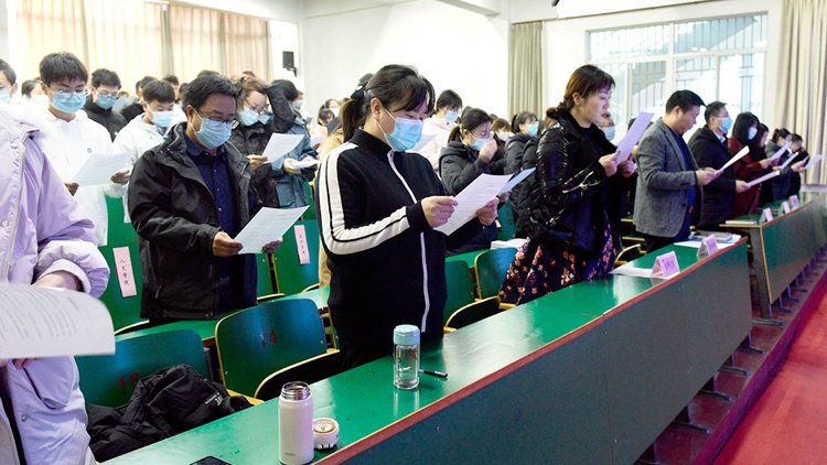 12月4日是“國家憲法日”。我校組織師生收看和同步參與國家憲法日“憲法晨讀”活動,引導(dǎo)師生自覺尊崇憲法、學(xué)習(xí)憲法、遵守憲法、維護(hù)憲法、運(yùn)用憲法。校宣傳部、學(xué)工部、團(tuán)委相關(guān)負(fù)責(zé)人,各二級學(xué)院師生代表共90余人參加活動。