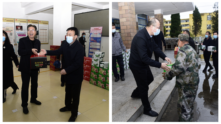 3月21日下午,校長范新會、黨委副書記彭虎軍、副校長郭瑾一行看望慰問了北新街校區(qū)疫情防控一線工作人員,并為他們送去了慰問品。黨委辦公室·校長辦公室主任劉勇、工會副主席劉霞陪同慰問。