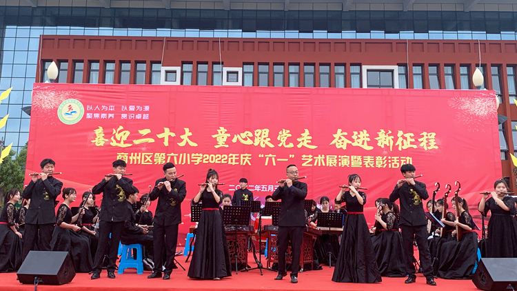 5月27日和31日,我校附屬小學(xué)和幼兒園分別舉辦了“喜迎二十大、共育花成長”和“喜迎二十大、童心跟黨走、奮進(jìn)新征程”主題藝術(shù)展演活動。副校長王新軍和學(xué)校發(fā)展規(guī)劃處、藝術(shù)學(xué)院負(fù)責(zé)人出席活動。藝術(shù)學(xué)院民族管弦樂團(tuán)為附屬小學(xué)師生表演了《象王行》《權(quán)御天下》《揚(yáng)鞭催馬運糧忙》等民樂節(jié)目,共同歡慶孩子們的節(jié)日。