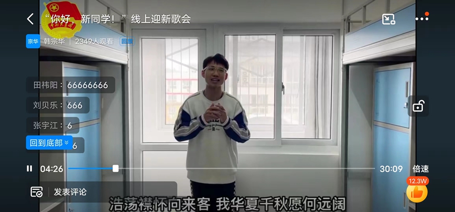校學(xué)生會舉辦了“詞海競越,其樂無窮”單詞打卡,“創(chuàng)意青春,‘罩’樣精彩”口罩Diy創(chuàng)意設(shè)計大賽和“你好!新同學(xué)”線上歌會等活動?;顒永塾媴⑴c人數(shù)1.9萬人次,參與打卡、點贊超過12.5萬次。