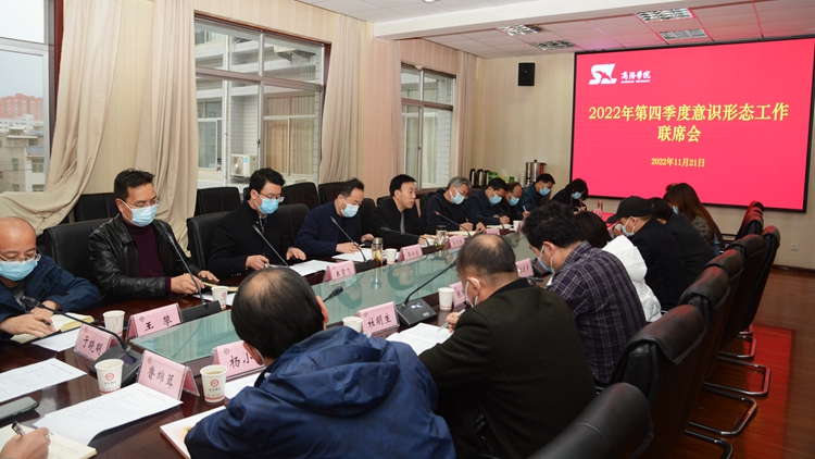 11月21日下午,黨委副書記彭虎軍主持召開2022年第四季度意識形態(tài)工作聯(lián)席會,總結(jié)2022年意識形態(tài)工作情況,分析、研判近期意識形態(tài)工作形勢,部署下一階段重點工作。意識形態(tài)工作聯(lián)席會議各成員單位負(fù)責(zé)人參加會議。