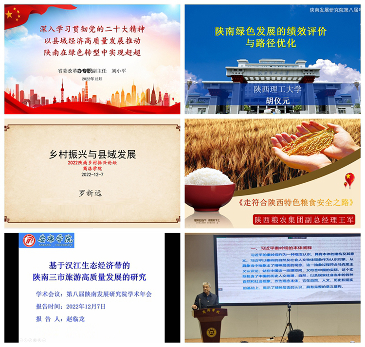 12月7日,陜南發(fā)展研究院第八屆年會暨陜西省社科聯學術研討會在我校召開。本次會議以“學習貫徹黨的二十大精神,加快發(fā)展方式綠色轉型與縣域高質量發(fā)展”為主題。來自陜南3所高校的150余位專家學者通過線上線下相結合的方式,圍繞生態(tài)文明建設、鄉(xiāng)村振興、區(qū)域文化與旅游、融合發(fā)展等方面進行了交流研討。
