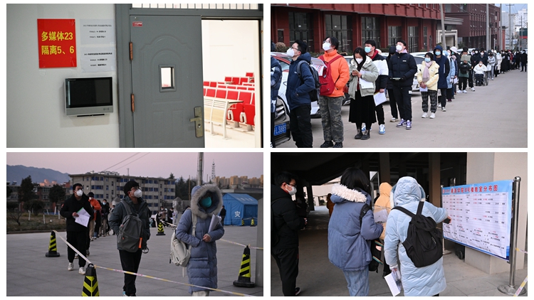 因疫情防控政策調(diào)整,加之研考當(dāng)日商洛市發(fā)出降雪預(yù)警,給本年度研考工作帶來了更大挑戰(zhàn)??荚嚬ぷ黝I(lǐng)導(dǎo)小組和相關(guān)職能部門靈活應(yīng)對,及時調(diào)整方案,加強(qiáng)考務(wù)力量。組織部、教工部面向全校發(fā)出號召,抽調(diào)教職工志愿者280名。教務(wù)處考前反復(fù)進(jìn)行排查,分類制定考場安排,從校門口到考場全程設(shè)置沿途指示牌和引導(dǎo)員,對特殊考生全程提供一對一服務(wù)。為保障丹江校區(qū)考生在考試期間保持充足精力,學(xué)校安排大巴車閉環(huán)接送,并在北新街校區(qū)設(shè)置專屬休息區(qū)和自習(xí)室,幫助考生洗去“趕考”的疲憊。后勤保障處為考生提供全程醫(yī)療保障和午餐簡餐,在為每個考點設(shè)置多個熱水直飲水供應(yīng)點,定時做好區(qū)域保潔消殺工作,營造溫暖舒適的候考環(huán)境。保衛(wèi)處、信息化建設(shè)與管理處工作人員提前到崗,規(guī)范入場秩序,提供咨詢引導(dǎo)等溫情服務(wù)。全體考務(wù)工作人員頂著疫情和風(fēng)雪堅守每一道防線,為廣大考生保駕護(hù)航,確保實現(xiàn)“平安研考”的工作目標(biāo)。