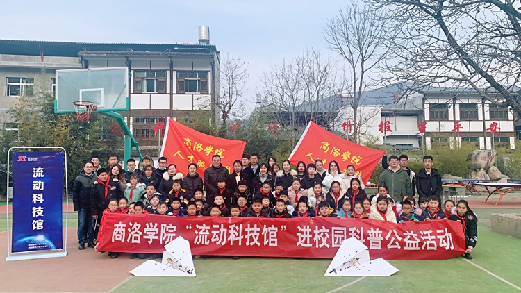 我?!傲鲃?dòng)科技館”科普進(jìn)校園志愿服務(wù)項(xiàng)目自2017年組建以來(lái),先后為省內(nèi)外40余所中、小學(xué)開(kāi)展線(xiàn)上、線(xiàn)下科普志愿服務(wù)活動(dòng)60余場(chǎng)次,受益師生群眾4萬(wàn)余人。2022年,我校在前期工作的基礎(chǔ)上打造了涵蓋“生物醫(yī)藥”“趣味物化”“信息技術(shù)”“生態(tài)環(huán)境”“體育健康”“文化藝術(shù)”六大主題的33個(gè)線(xiàn)上科學(xué)課程,聯(lián)合陜西省科協(xié)、商洛市科協(xié)等單位開(kāi)展“云端秦嶺科技館·公益科普大講堂”“喜迎二十大,科普向未來(lái)—流動(dòng)科技館云端巡展活動(dòng)”等主題活動(dòng),受到地方政府和群眾的高度贊譽(yù)。我校被陜西省科協(xié)表彰為“‘十三五’陜西省全民科學(xué)素質(zhì)工作先進(jìn)集體”。項(xiàng)目被商洛市科學(xué)技術(shù)協(xié)會(huì)授予“科普流動(dòng)課堂”稱(chēng)號(hào),榮獲全國(guó)大學(xué)生“互聯(lián)網(wǎng)+”創(chuàng)新創(chuàng)業(yè)大賽陜西賽區(qū)金獎(jiǎng),并入選省科協(xié)10年科普工作優(yōu)秀案例、“全國(guó)科普日”優(yōu)秀活動(dòng),中國(guó)科協(xié)科技志愿服務(wù)項(xiàng)目,成果在全國(guó)科技志愿服務(wù)云沙龍中向全國(guó)觀眾展示,被中國(guó)科技網(wǎng)、學(xué)習(xí)強(qiáng)國(guó)、《人民日?qǐng)?bào)》等官方媒體報(bào)道40余次。