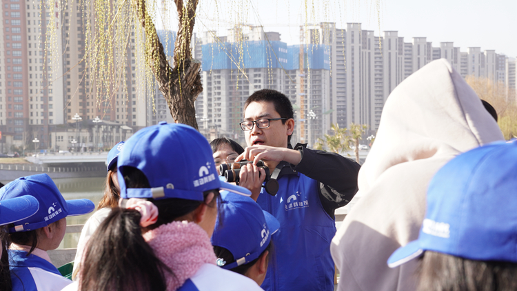 在生物學(xué)院張博博士的帶領(lǐng)下,寺坪初級中學(xué)的同學(xué)們現(xiàn)場學(xué)習(xí)了各種鳥類的棲息環(huán)境、飛行方式及野生動物保護(hù)知識,學(xué)會了根據(jù)體型、羽色、行為來識別鳥的方法。他們化身成小小鳥類觀察員,通過科學(xué)的觀鳥方法尋找鳥兒的蹤跡。在望遠(yuǎn)鏡的視野下,他們仔細(xì)觀察綠頭鴨、小??等8種棲息于丹江濕地的鳥類,親身體驗自然之美。