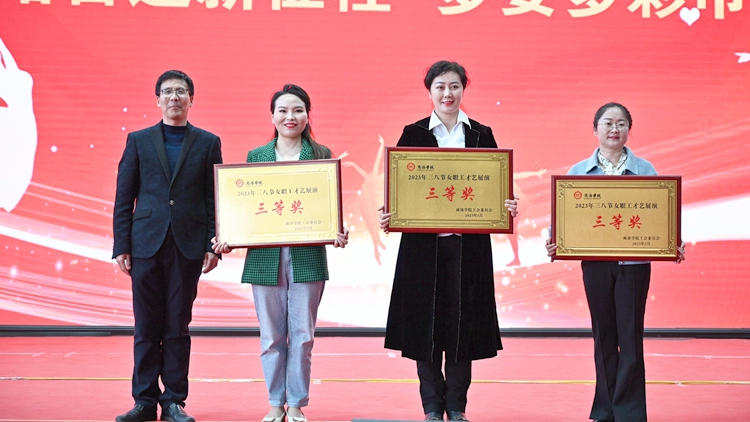 為慶?!叭恕眿D女節(jié),營造健康向上的校園文化氛圍,3月8日下午,校工會以“團結(jié)奮進新征程 多姿多彩巾幗秀”為主題,組織舉辦了 “三八”婦女節(jié)女教職工才藝展演活動。活動在丹江校區(qū)舉行,來自工會各分會的女教工們表演了歌曲、舞蹈、朗誦、健美操、戲曲聯(lián)唱等18個文藝節(jié)目。校黨委副書記、工會主席彭虎軍,工會副主席魚小強出席活動并為獲獎節(jié)目頒獎。工會各分會主席、校工會全體工作人員和廣大女教職工歡聚一堂,共同欣賞舞臺上別樣的巾幗風(fēng)采。