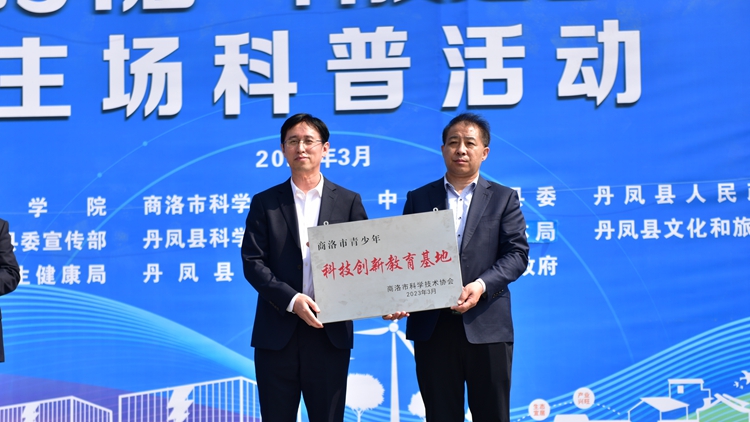 啟動儀式上,孫舉恒為我?!吧搪迨星嗌倌昕萍紕?chuàng)新教育基地”授牌,王新軍代表學校接牌。與會領導分別為丹鳳縣天麻與食用菌、葡萄酒、中藥材與核桃、畜禽養(yǎng)殖四個科技志愿服務隊授旗,并對該縣科普工作先進集體、先進個人、優(yōu)秀科技工作者,以及最美科普志愿者進行表彰。