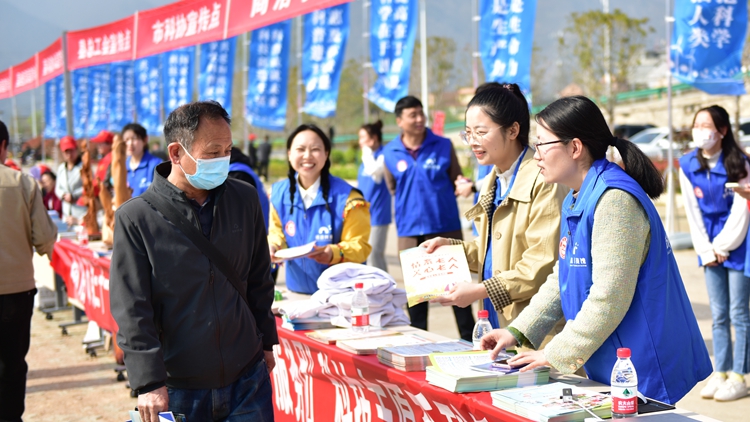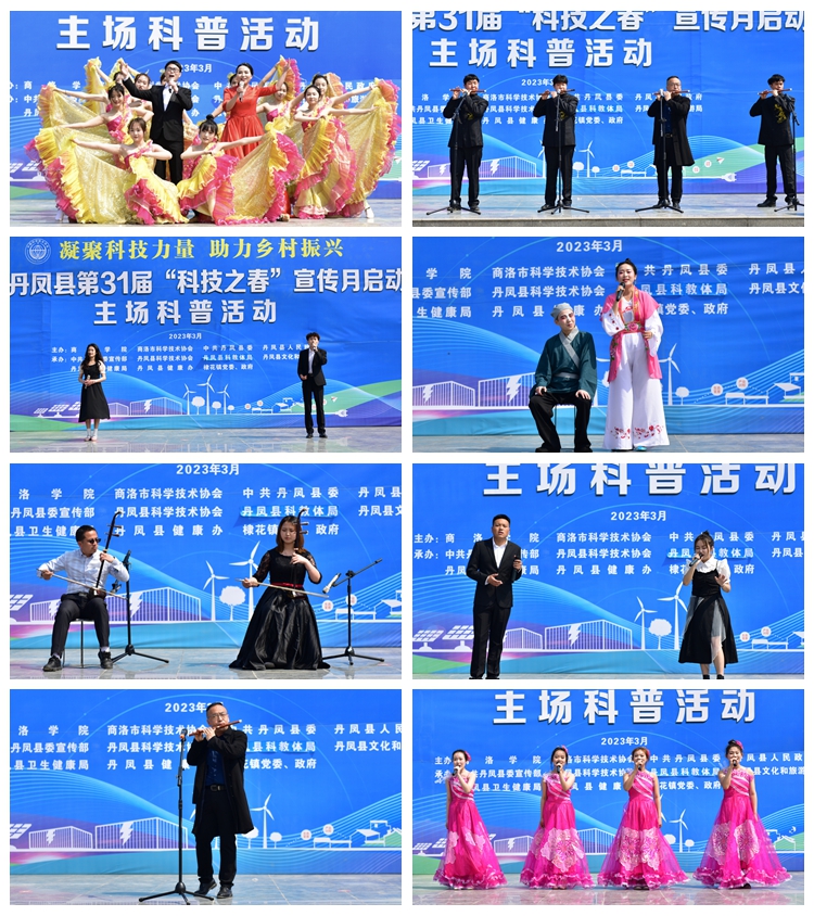 我校健康管理學院、生物學院的師生以“情景劇+講解”的形式,為現場群眾開展心肺復蘇訓練、農作物栽培、中草藥種植、健康膳食、老年護理等方面的科普宣傳活動。來自藝術學院的師生聲情并茂地表演了花鼓戲、笛子演奏、歌伴舞等文藝節(jié)目,飽含商洛文化元素,同時展出的根雕藝術作品也為群眾帶來美的享受。通過現場發(fā)放800余份宣傳資料、開展有獎科學知識問答等宣傳形式,讓參與群眾在笑聲中感受商洛文化、學習科學知識,進一步激發(fā)了大家熱愛祖國、熱愛家鄉(xiāng)、崇尚科學的熱情。