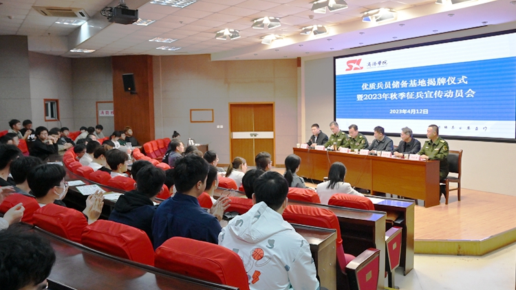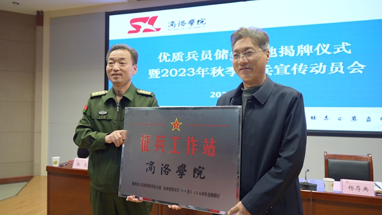 4月12日,我校舉辦2023年優(yōu)質(zhì)兵員儲備基地揭牌儀式暨征兵工作進校園政策宣講動員會。商洛軍分區(qū)大校司令員、市征兵領(lǐng)導(dǎo)小組副組長王宏民,校長范新會出席會議。商洛軍分區(qū)動員處上校處長、市人民政府征兵辦公室副主任曹建明,商州區(qū)人武部上校部長周武強,我校人民武裝部主要負(fù)責(zé)人,各二級學(xué)院征兵工作聯(lián)絡(luò)員及畢業(yè)生代表160余人參加會議。