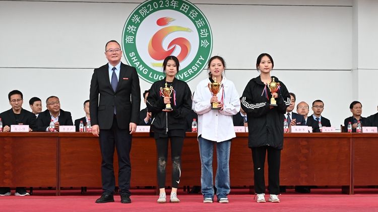 在熱烈的掌聲中,副校長劉寶盈分別為獲得體育道德風(fēng)尚獎的學(xué)院和團(tuán)體總分前三名獲獎的學(xué)院頒獎,副校長王新軍為男子總分前三名頒獎,副校長郭瑾為女子總分前三名獲獎學(xué)院頒獎。