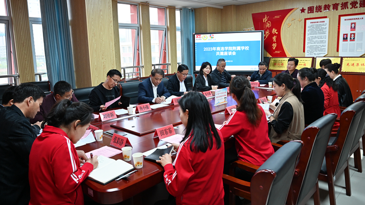 趙阿玲、劉莉莉、朱小強(qiáng)分別匯報(bào)了2022年合作共建項(xiàng)目實(shí)施情況和2023年合作共建項(xiàng)目擬定情況。我校相關(guān)部門負(fù)責(zé)人與附屬學(xué)校班子成員就2023年合作共建工作進(jìn)行了交流。