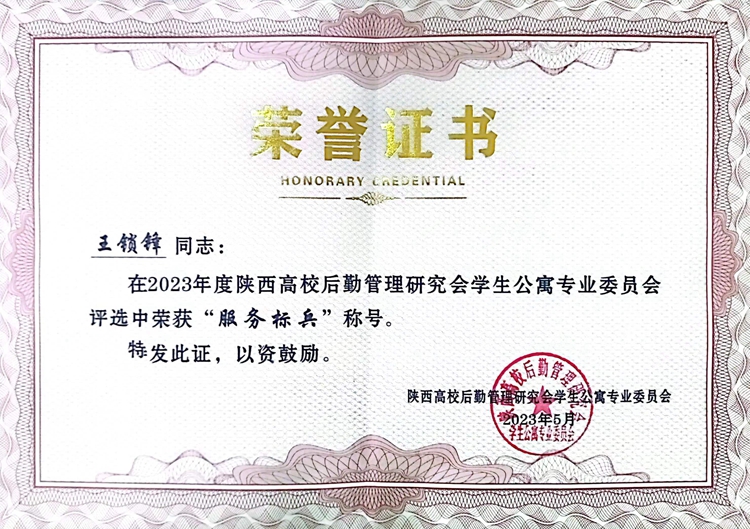 會(huì)上,陜西高校學(xué)生公寓專業(yè)委員會(huì)秘書長賈亞新宣讀了《2023年度陜西高校學(xué)生公寓先進(jìn)集體、服務(wù)標(biāo)兵、優(yōu)秀員工》的表彰決定。我校后勤保障處獲得“陜西高校學(xué)生公寓先進(jìn)集體”榮譽(yù)稱號(hào),后勤保障處副處長殷譚鋒被評(píng)為陜西高校學(xué)生公寓“優(yōu)秀員工”,后勤保障處職工王鎖鋒被評(píng)為陜西高校學(xué)生公寓“服務(wù)標(biāo)兵”。后勤保障處處長李彥廣作為嘉賓之一為優(yōu)秀員工代表頒發(fā)獎(jiǎng)狀。