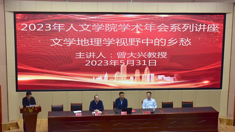 5月31日下午,中國(guó)文學(xué)地理學(xué)會(huì)會(huì)長(zhǎng)、廣州大學(xué)文學(xué)地理學(xué)研究院名譽(yù)院長(zhǎng)曾大興教授應(yīng)邀來我校作學(xué)術(shù)報(bào)告,并受聘為我校兼職教授。校黨委書記張志昌出席報(bào)告會(huì)并講話。副校長(zhǎng)郭瑾代表學(xué)校向曾大興教授頒發(fā)聘書。商洛市作協(xié)、評(píng)協(xié)成員代表,人文學(xué)院黨政負(fù)責(zé)人及師生代表共300余人聽取報(bào)告。