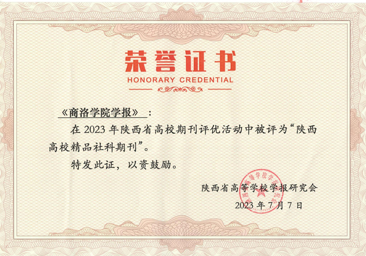 7月7日,2023年度陜西省高校期刊評優(yōu)結(jié)果揭曉,我校主辦的《商洛學(xué)院學(xué)報(bào)》被評為“陜西高校精品社科期刊”,學(xué)報(bào)優(yōu)勢欄目“賈平凹暨商洛文化研究”獲“優(yōu)秀欄目獎(jiǎng)”。