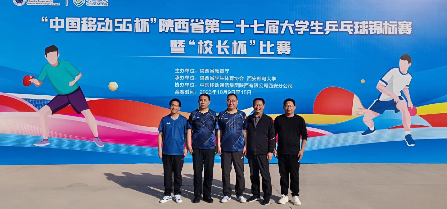 10月9日至15日,陜西省第二十七屆大學(xué)生乒乓球錦標(biāo)賽暨“校長杯”比賽在西安舉行。我校副校長劉寶盈、王新軍參加“校長杯”甲組比賽,11名學(xué)生參加大學(xué)生甲組所有項(xiàng)目的比賽。我校榮獲“體育道德風(fēng)尚獎”。